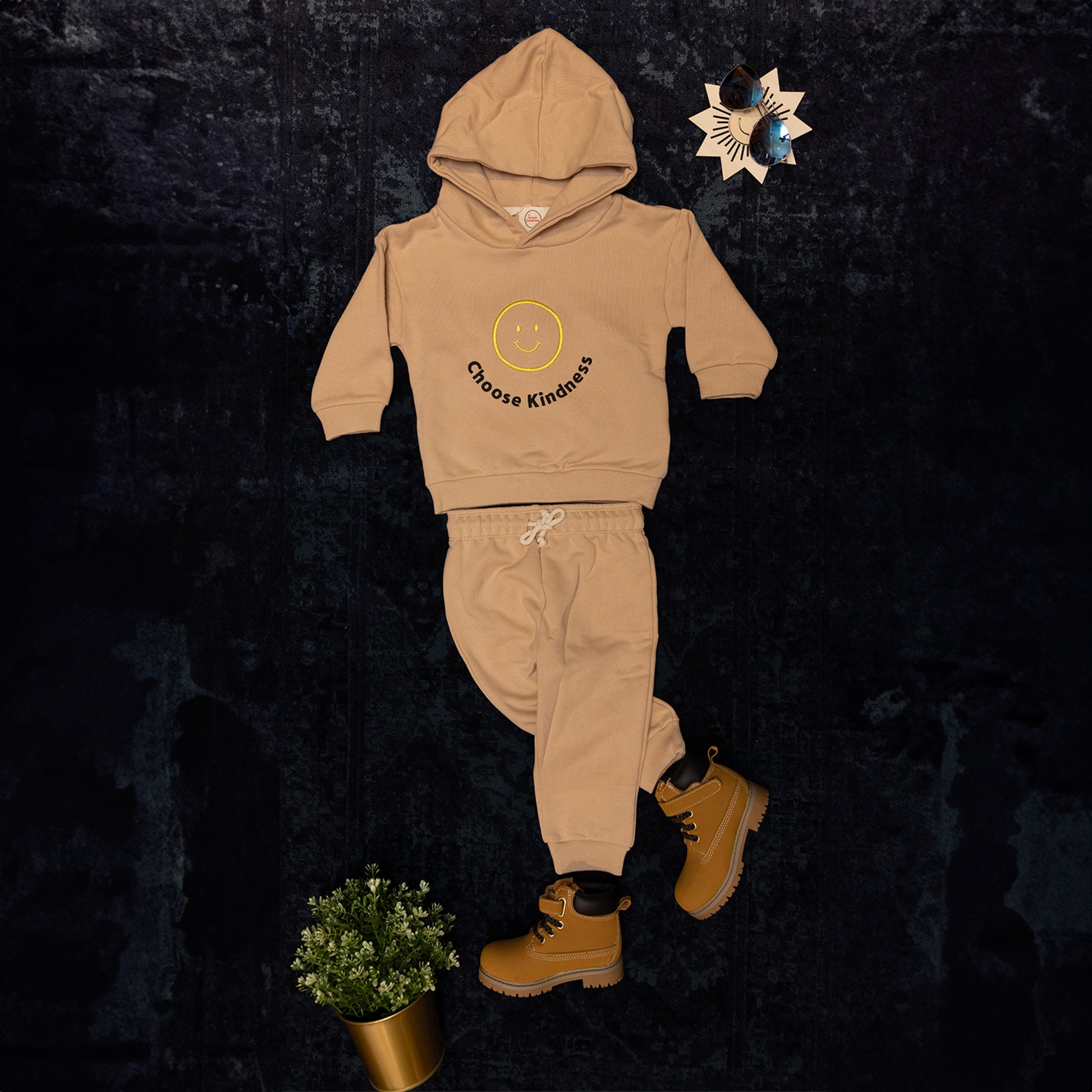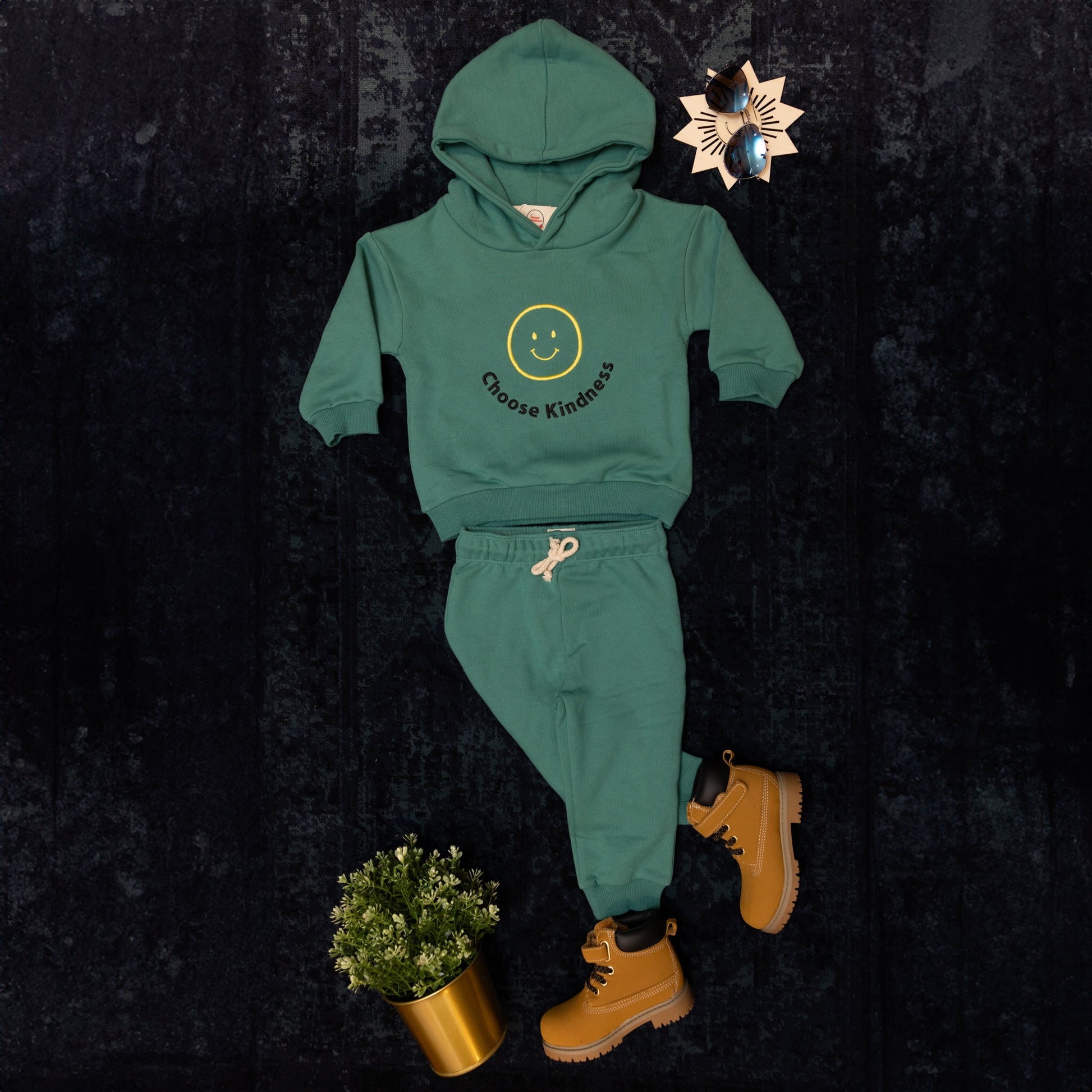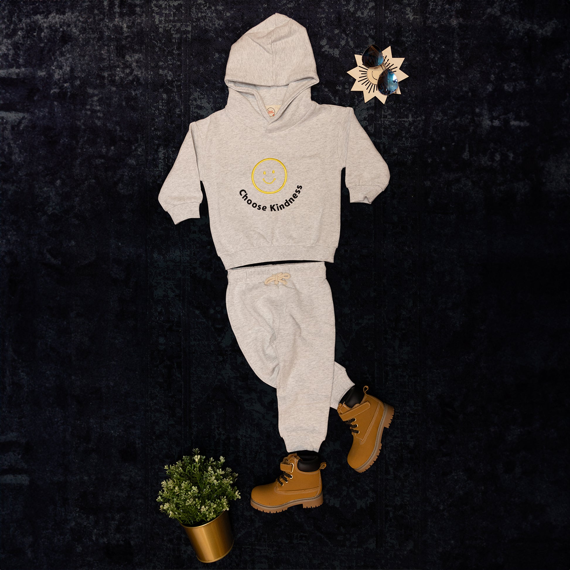 Featuring a powerful message "CHOOSE KINDNESS" embroidered on the front of the hoodie, this set serves as a reminder to spread positivity in every situation. Made with high-quality materials for maximum comfort and durability. Let your little one radiate joy and happiness with this trendy and functional outfit.