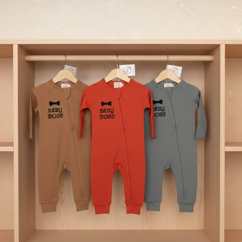 Crafted from 100% organic cotton, our stylish rompers with "BABY BOSS" embroidery offers unparalleled comfort for your little one. Soothing to their delicate skin, these rompers are perfect for playtime and naptime. Let your baby show off their boss mentality with this adorable piece.